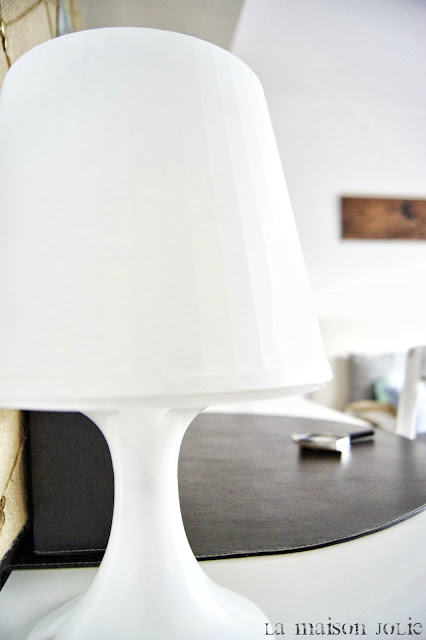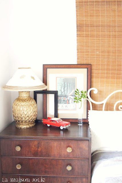I was contemplating painting it white or black but I think I'll leave it as is, since the lamp and the bed frame are working well together.