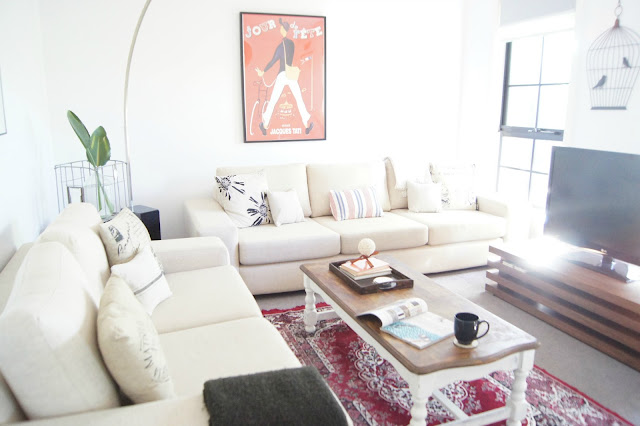 The backdrop behind the bed is a large bamboo blind that is hung from couple of hooks. Originally I wanted an accent wall that I could easily change. But now I'm not too sure it works. Might have to take it down.